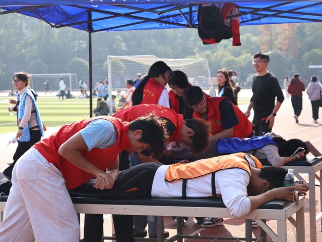 两校区志愿者与医疗保障人员早已各就各位,全程提供细致服务,为每一位参加活动教职工的安全与体验筑牢坚实后盾。两校区遥相呼应,共同书写着西华教职工昂扬向上、奋勇争先的精神风貌。